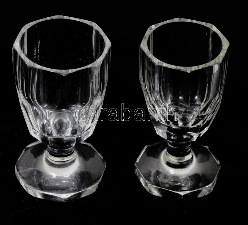 Leírás: 2 db régi talpas üveg pohár, csiszolt, jó állapotban 11,5 cm