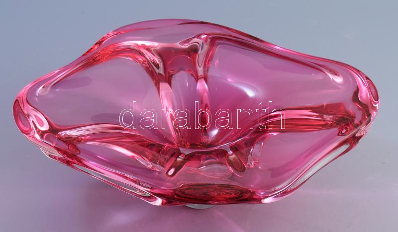 Leírás: Antik cseh pink színű kínáló, jelzés nélkül, kis kopással, d: 30 cm
