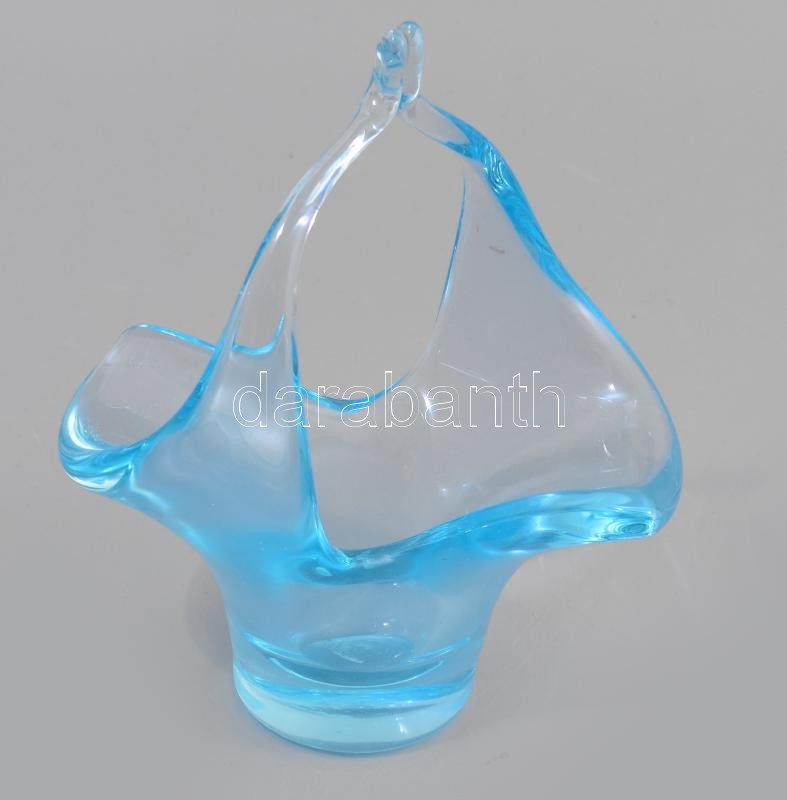 Leírás: Frantisek Zemek cseh türkiz üveg kosár. Formába öntött,