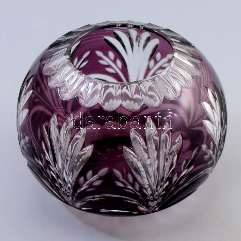 Leírás: Lila kristály gömbváza, jelzés nélkül, m: 10,5 cm