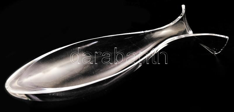 Leírás: Skandináv kristály hal alakú kínáló, jelzés nélkül, h: 35,5 cm