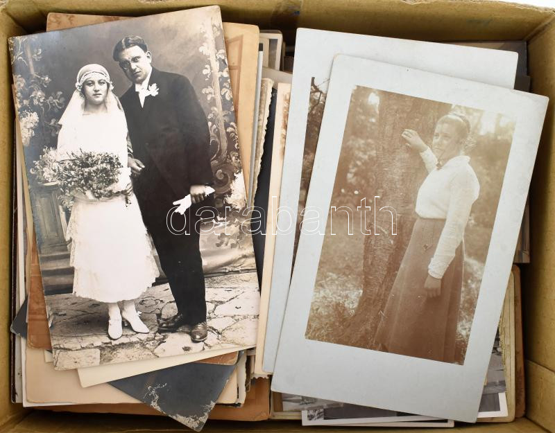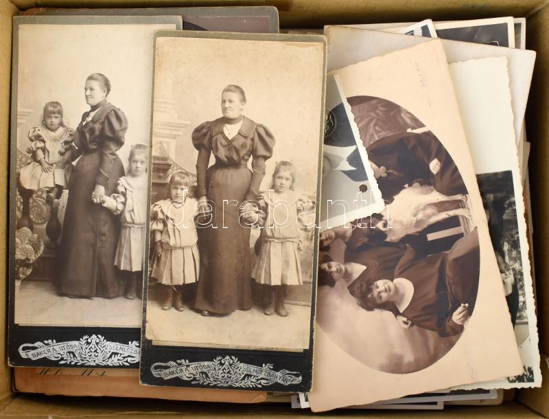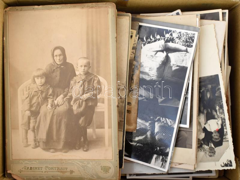cca 210 darab vegyes, különböző korokból származó családi fotó, közte Felvidék, Selmecbánya, stb., sok keménytáblás fotóval, közte militária témájúak is.
