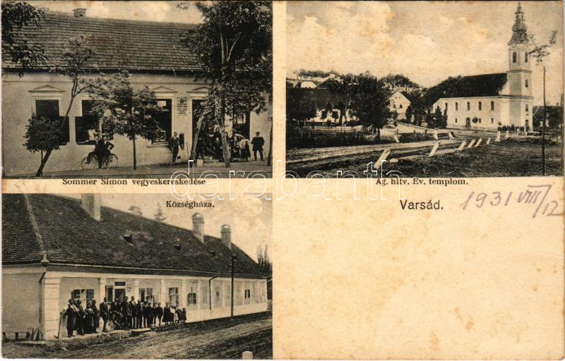 1931 Varsád, Evangélikus templom, Községháza, Sommer Simon üzlete. Kál... https://www.darabanth.com/hu/476-Gyorsarveres/476.0/Kepeslapok/Magyarorszag~2000005/1931-Varsad-Evangelikus-templom-Kozseghaza-Sommer-Simon-uzlete-Kalman-fenykepesz-fl~II3238585
