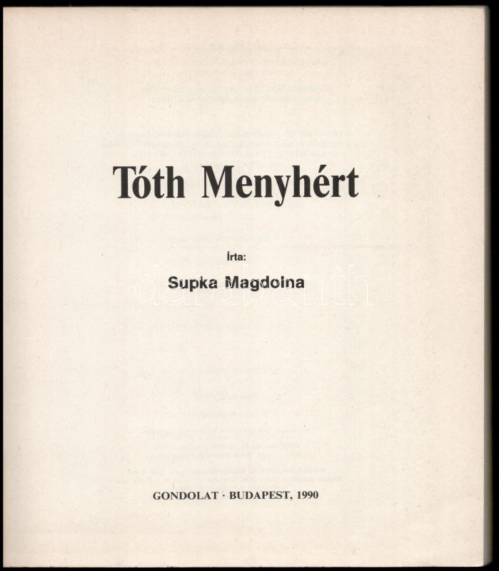 Supka Magdolna: Tóth Menyhért. Bp., 1990, Gondolat. Első kiadás. Fekete-fehér és színes képekkel, reprodukciókkal illusztrálva. Kiadói papírkötés, kiadói papír védőborítóban.