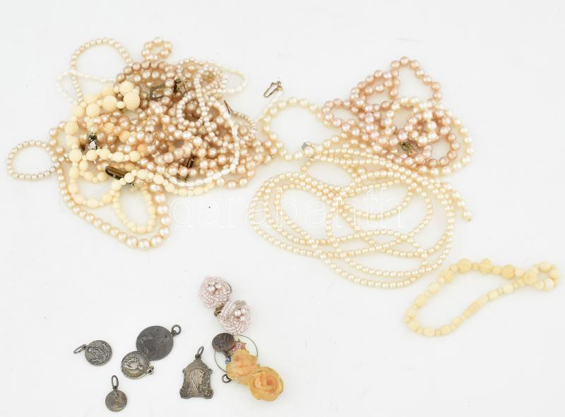 Leírás: Zacskónyi bizsu nyaklánc és kegytárgy medálok