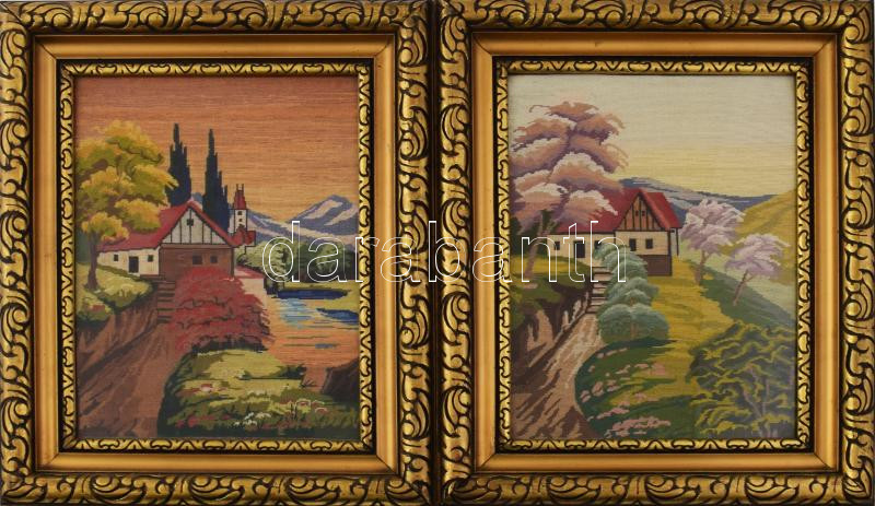 2 db régi, dekoratív, üvegezett fa képkeret, szövetképpel, hátoldalán Májer Gáspár budapesti képkeretező 1940 k. bélyegzésével. Belső méret: 30,5x23 cm
