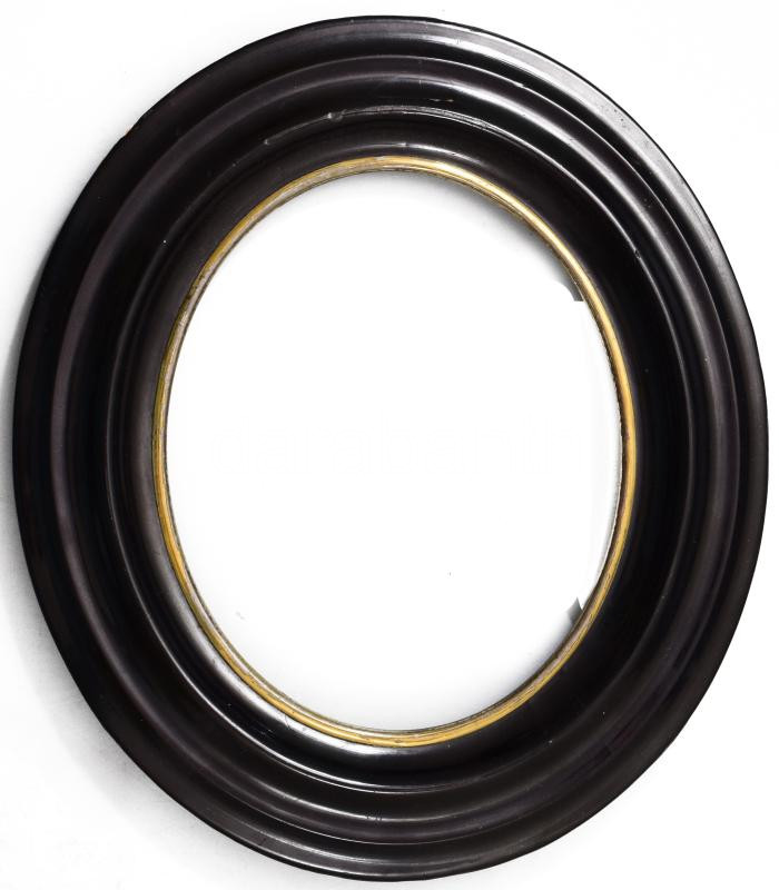 Leírás: Ovális, antik, belső ívén rézlemezzel borított fakeret, belső méret: 18,6x14,8 cm