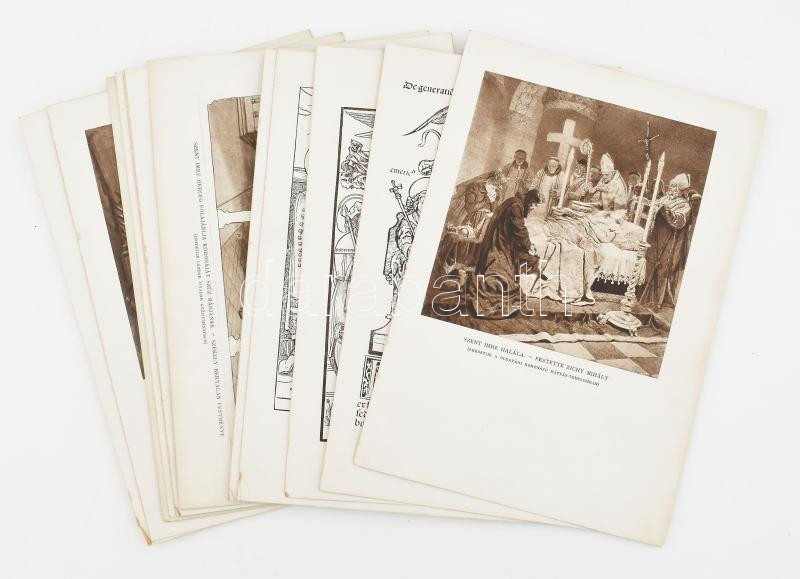 Szent István királyt, Szent Imre herceget és más szenteket ábrázoló reprodukciók (Zichy Mihály, Lotz Károly, Székely Bertalan és mások munkái után), 12 db fekete-fehér nyomat, lapméret: 24x16,5 cm