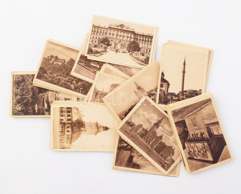 Leírás: cca 1930 ,,Tündérvásár Nagymagyarországért" képes gyűjtőkártyák, 105 db, vegyes állapotban, 8x5,5 cm