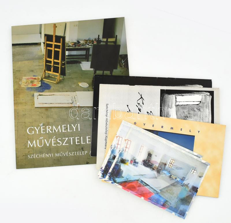 Leírás: cca 1990-2000 Gyermelyi Művésztelep katalógusok, 4 db + képeslapok