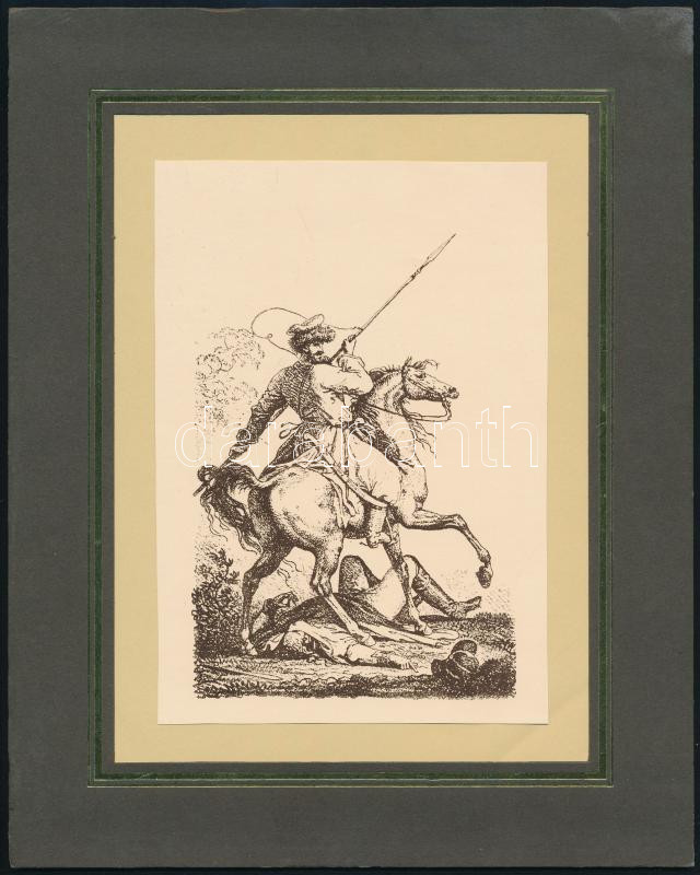 Leírás: cca 1990-2010 Kozák harcos. Modern nyomat, papír, jelzett a nyomaton. paszpartuban. 16,5×11,5 cm