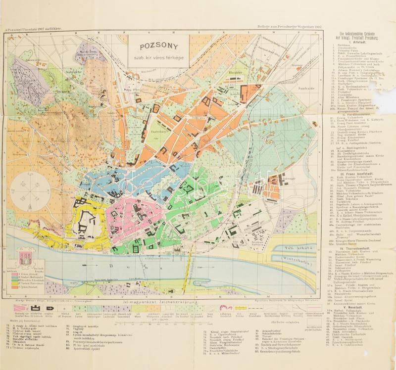 1907 Pozsony szab. kir. város térképe, a Pozsonyi Útmutató melléklete,... https://www.darabanth.com/hu/476-Gyorsarveres/476.0/Mutargy-papirregiseg-egyeb/Reklam~2000116/1907-Pozsony-szab-kir-varos-terkepe-a-Pozsonyi-Utmutato-melleklete-molyragta-nyomokkal-41x42-cm~II3239414