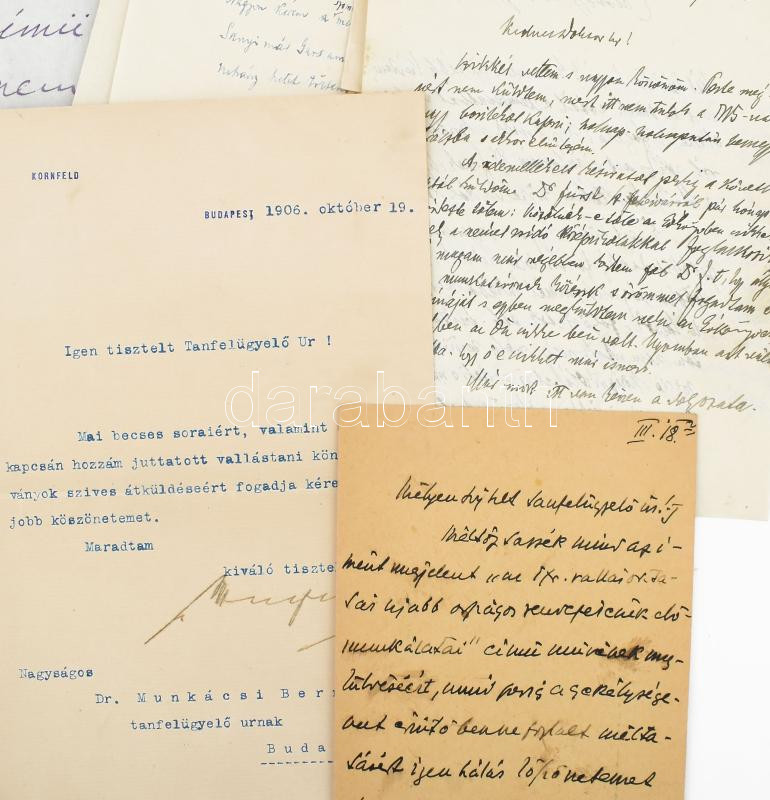 cca 1900-1938 Heller Bernátnak szóló klf levél, dokumentum és levélboríték, és egy Heller Bernát kézirat kártyán, össz kb. 20 db; közte 1 db levél Guttmann Mihály (1872-1942) rabbi, hebraista, talmudista, az Országos Rabbiképző Intézet igazgatója, a jeruzsálemi Héber Egyetem első professzorától; 2 db levél Telegdi Zsigmond (1909-1994) nyelvész, orientalistától és 1 db levél Róheim Géza (1891-1953) néprajzkutatótól + Munkácsi Bernátnak szóló 2 db levél és dokumentum. Érdekes, átnézésre érdemes, Heller Bernát esetében részben judaika témájú anyag részben héber nyelven, közte több beazonosítandó aláírással