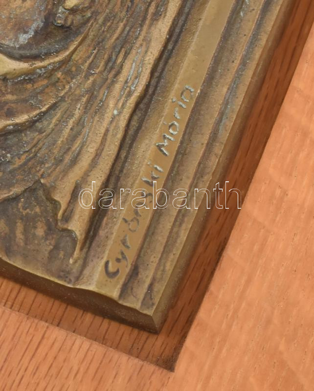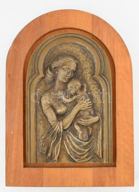Leírás: Cyránski (Cziránszki) Mária (1940-2018): Kismama. Bronz falikép fa keretben. Jelzett, képcsarnok címkével, 26x17 cm, kerettel 35x25 cm