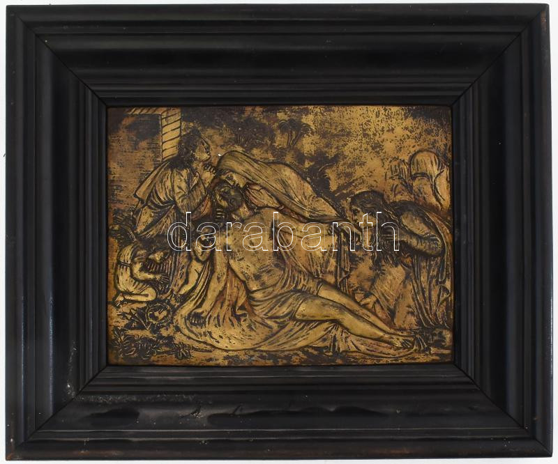 Krisztus siratása. Antik fémlemez dombormű, fa keretben, 13x17 cm, ker... https://www.darabanth.com/hu/476-Gyorsarveres/476.0/Mutargy-papirregiseg-egyeb/Szobrok-kisplasztikak-plakettek~500010/Krisztus-siratasa-Antik-femlemez-dombormu-fa-keretben-13x17-cm-kerettel-21x25-cm~II3234282