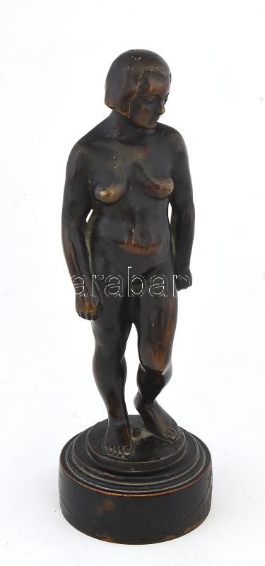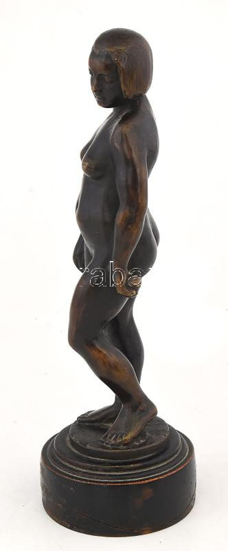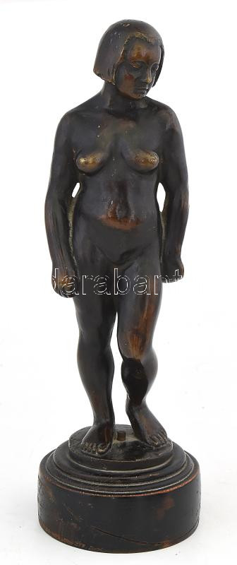 Leírás: Sóváry János (1895-1966): Női akt. Patinázott bronz, fa talapzaton. Jelzés nélkül: 38 cm