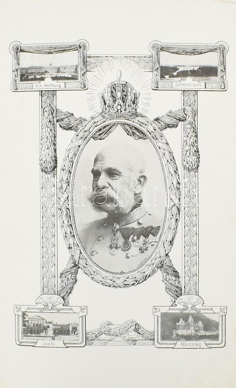 1917 Zur Aktion der Kaiserin Zita "Für das Kind!" k.u.k. Major A. Fritsch (1866 Krieger) MIlitär Leiter und Inspicirender von Fabriken in Wien XIII. 4 t. képekkel illusztrált táblák a császári családról. Aranoyzott, címeres vászonkötésű kartonált mappában, sárga-fekete zsinórral. Egy lapon beszakadással, egyébként nagyon szép állapotban / boards illustrated with pictures about the imperial family. In a gilded, coat-of-arms linen-bound cardboard folder with yellow-black cord. With a tear on one page, otherwise in very good condition