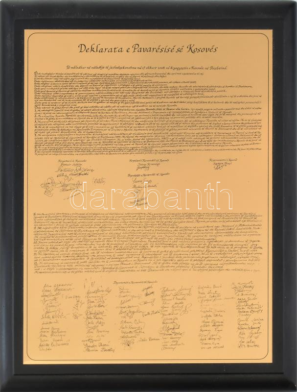 2008, Koszovó függetlenségi nyilatkozata rézlemezre gravírozva, díszdo... https://www.darabanth.com/hu/476-Gyorsarveres/476.0/Mutargy-papirregiseg-egyeb/Tortenelmi-dokumentumok-keziratok-erdekessegek~500022/2008-Koszovo-fuggetlensegi-nyilatkozata-rezlemezre-gravirozva-diszdobozban-17x12-cm~II3231959