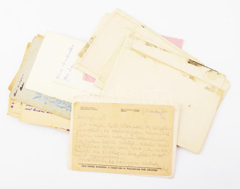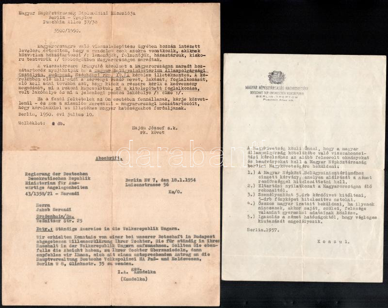 cca 1916-57 A II. világháború után Budaörsről részben kitelepített német (sváb) család iratai, fotói, hadifogoly levelezések, NDK-ból Budaörsre történő visszatelepítéssel kapcsolatos iratok az 1950-es évekből, néhány hadifogoly lap vitéz Herendi Jakabnak címezve. Többségében magyar nyelven. Össz. több mint 40 db. Érdekes, átnézésre érdemes anyag!
