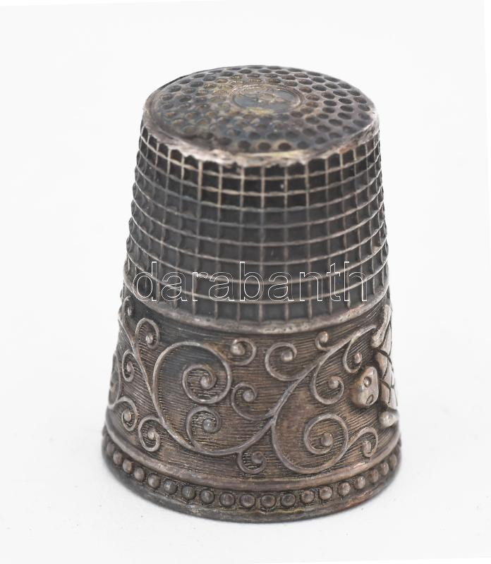 Antik ezüst (Ag) gyűszű, jelzés nélkül, nettó: 3,4g https://www.darabanth.com/hu/476-Gyorsarveres/476.0/Nemesfem-disztargyak-ekszerek-dragakovek/Nemesfem-disztargyak-ekszerek-dragakovek~1500001/Antik-ezust-Ag-gyuszu-jelzes-nelkul-netto-3-4g~II3235011