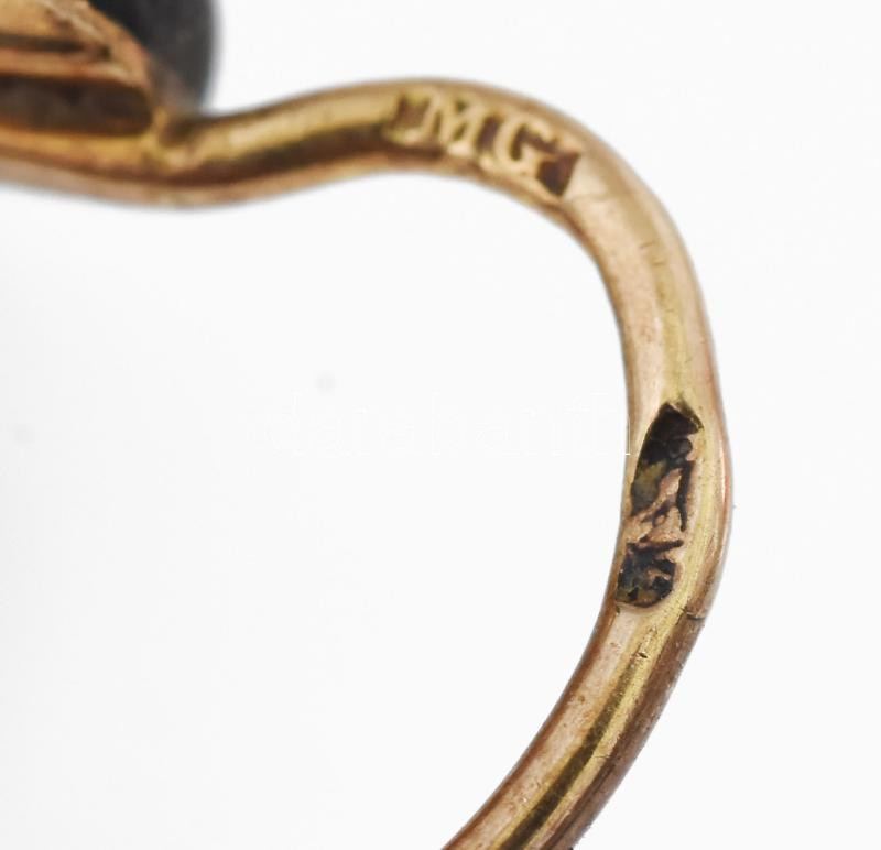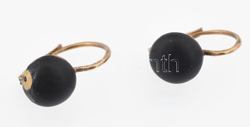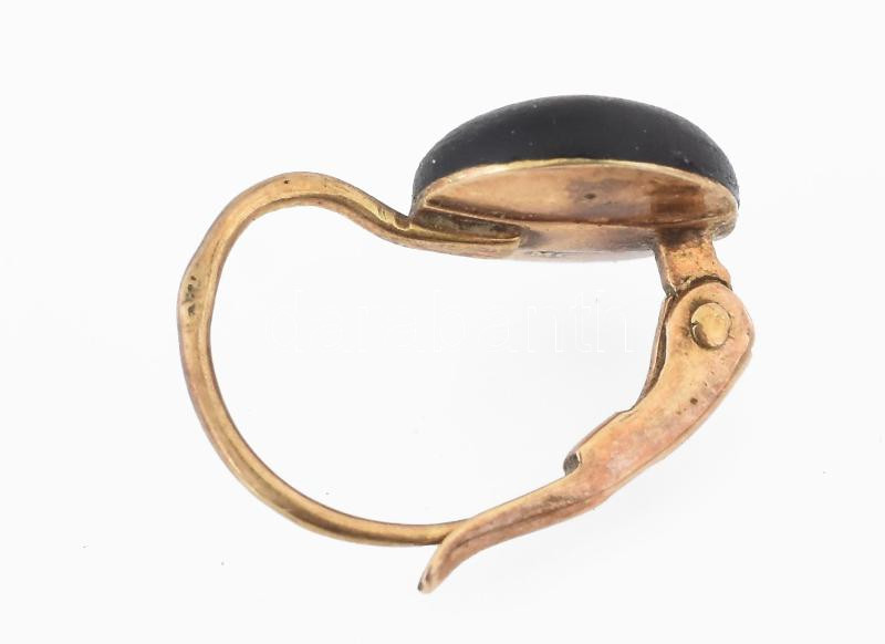 Leírás: Arany (Au) fülbevaló pár, fekete kő berakással, jelzett, 14k, bruttó 1,5g