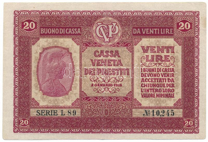 ... https://www.darabanth.com/hu/476-Gyorsarveres/476.0/Numizmatika/Kulfoldi-bankjegyek~1000017/Olaszorszag-Velence-Osztrak-magyar-megszallas-1918-20L-TVF-folt-Italy-Venice-Austro-h~II3233731
