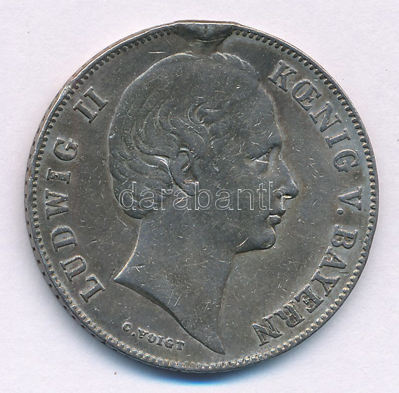 German States / Bavaria 1864. 1 Gulden Ag "Ludvig II" (10,35g) C:VF earmark and excess material, edge error, patina