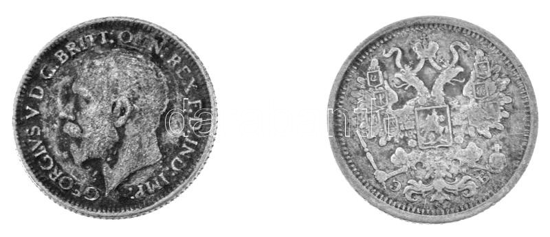 Vegyes: Orosz Birodalom 1906. 15k Ag + Német Birodalom 1918E 1/2M Ag brossnyom + Nagy-Britannia 1929. 6p Ag T:VF,F Mixed: Russian Empire 1906. 15 Kopecks Ag + German Empire 1918E 1/2 Mark Ag with brooche mark+ United Kingdom 1929. 6P Ag C:VF,F