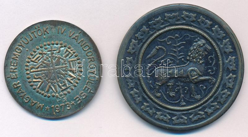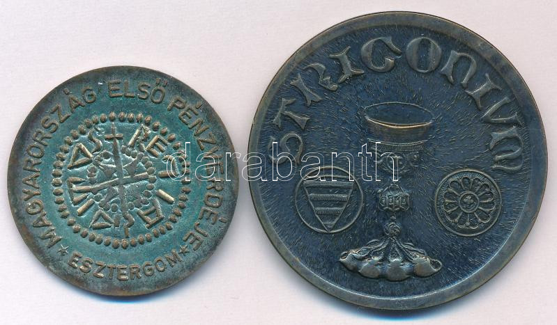 Leírás: Peternák Gusztáv (1928- ) 1973. "Magyarország Első Pénzverdéje - Esztergom / Magyar Éremgyűjtők IV. Vándorgyűlése" ezüstözött bronz emlékérem (37mm) + DN "STRIGONIUM" kétoldalas bronz emlékérem (49mm) T:AU ezüstözés kopás, patina