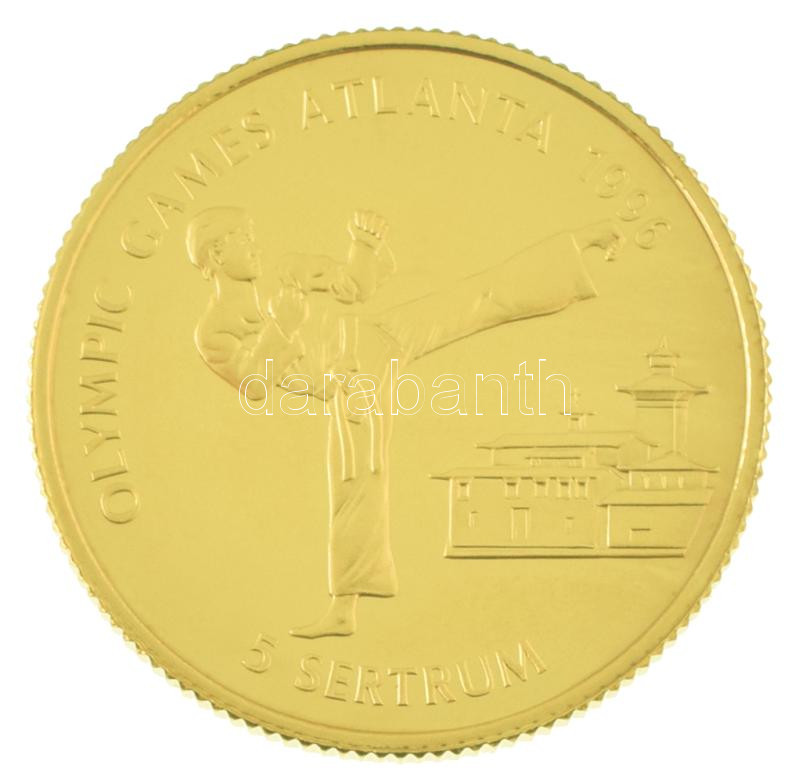 Bhutan 1994. 5 Sertums Au "Summer Olympics Atlanta 1996 - Tae kwon do" (7,78g/0.583) C:PP