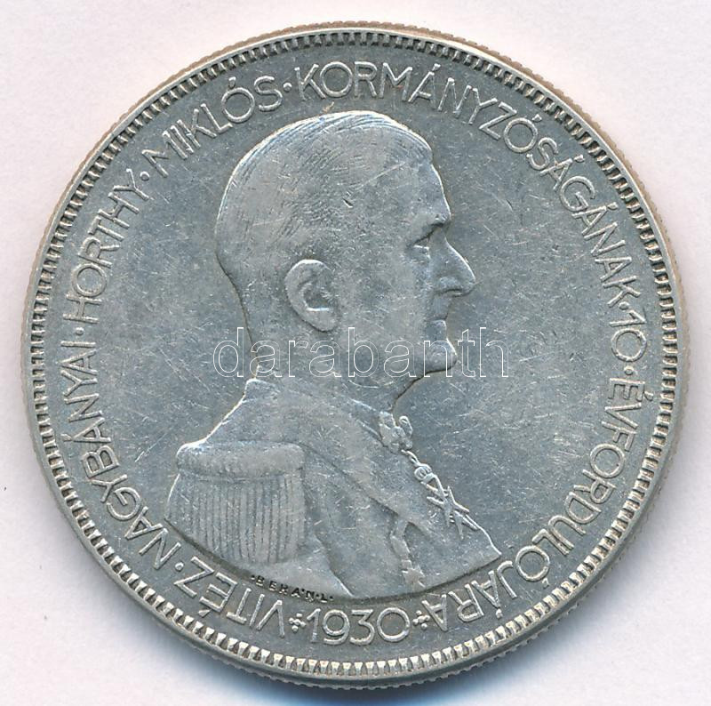 Leírás: 1930. 5P Ag hajas "Horthy jobbra" T:XF