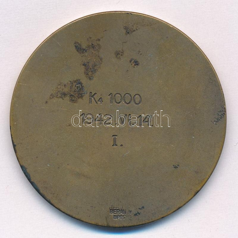 Leírás: 1942. "Pannonia Turista Egyesület - Kajak-verseny" egyoldalas, bronz díjérem, gravírozott "K4 1000 - 1942. VI. 14. - I." szöveggel, és "Berán N BPest" gyártói jelzéssel (46mm) T:AU patina