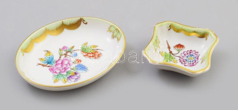 Leírás: Herendi 2 darab gyűrűtartó tálka, jelzett, kis kopással, 5,5x5,5 cm, 10x7,5 cm