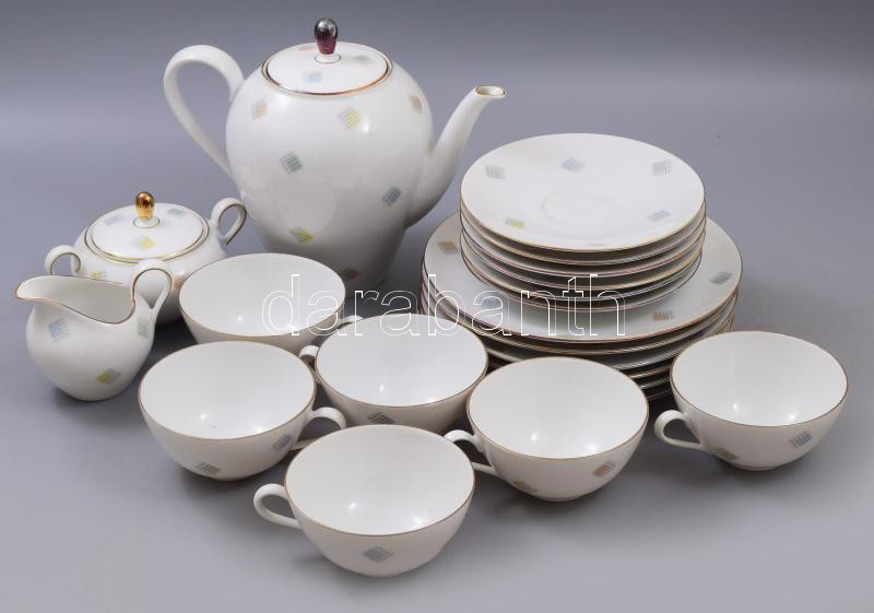 Leírás: cca 1940/50, Seltmann Weiden mid-century vékonyporcelán teás készlet, teljes, jelzett, minimális kopással.