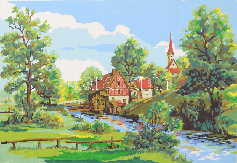 Jelzés nélkül: Falu vízimalommal. Tempera, karton. 34x49 cm https://www.darabanth.com/hu/477-Gyorsarveres/477.0/Festmenyek-es-grafikak/Festmenyek-es-grafikak-jelzessel-jelzes-nelkul~1000010/Jelzes-nelkul-Falu-vizimalommal-Tempera-karton-34x49-cm~II3251562