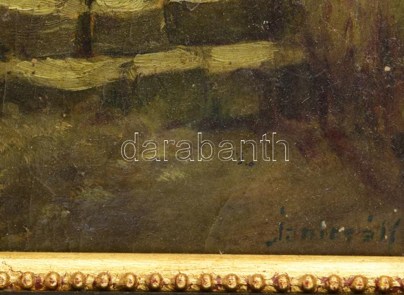 Leírás: Olvashatatlan (Janicsák?) jelzéssel, 1910-30 körül: Tabáni lépcső. Olaj, fa. Apró felületi sérüléssel. Dekoratív fakeretben. 30x22 cm.
