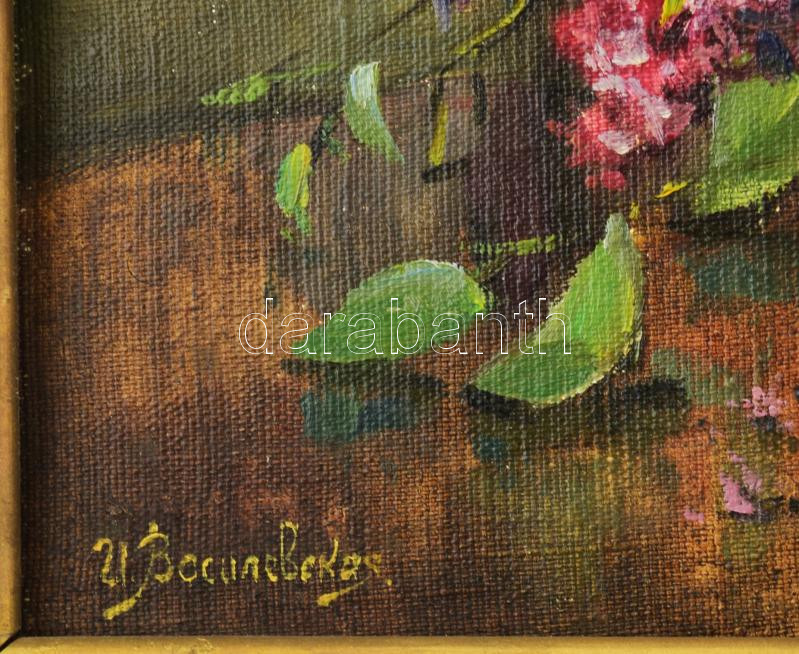 Olvashatatlan cirill betűs jelzéssel, feltehetően szovjet festő: Csendélet, 1987. Olaj, vászon, farostra kasírozva, jelzett. Dekoratív, kissé kopott fakeretben. 35x50 cm