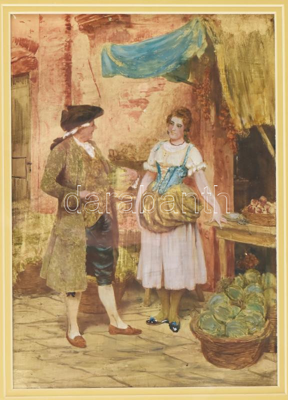 Leírás: Olvashatatlan jelzéssel: Piaci jelenet. Keret nélkül, 25,5×18 cm.