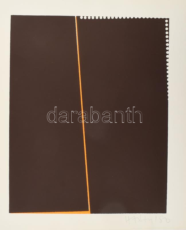 H. Tóth Tamás (1958-): Geometrikus kompozíció (cím nélkül.) Szitanyomat, papír. Jelzett. Az 1980-ban 200 példányban megjelent Tér-kapcsolat-lehetőség mappából. 25x20 cm.