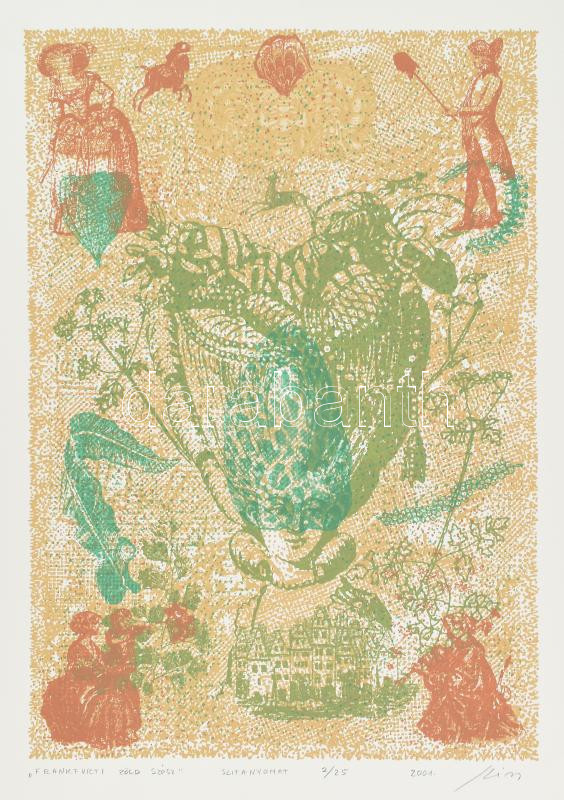 Kiss Ilona (1955-): "Frankfurti zöld szósz", 2001. Szitanyom... https://www.darabanth.com/hu/477-Gyorsarveres/477.0/Festmenyek-es-grafikak/Festmenyek-es-grafikak~1000011/Kiss-Ilona-1955-Frankfurti-zold-szosz-2001-Szitanyomat-papir-jelzett-225-szamozassa~II3142790