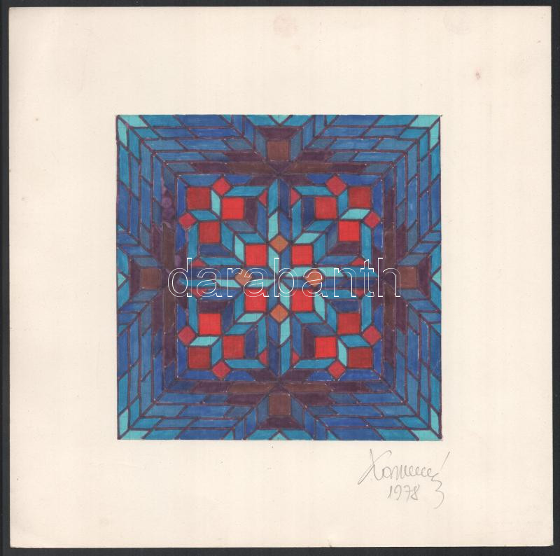 Leírás: Koppány Frigyes (?-?): Op-art kompozíció, 1978. Filctoll, papír, jelzett, papírra kasírozva. 14x14 cm