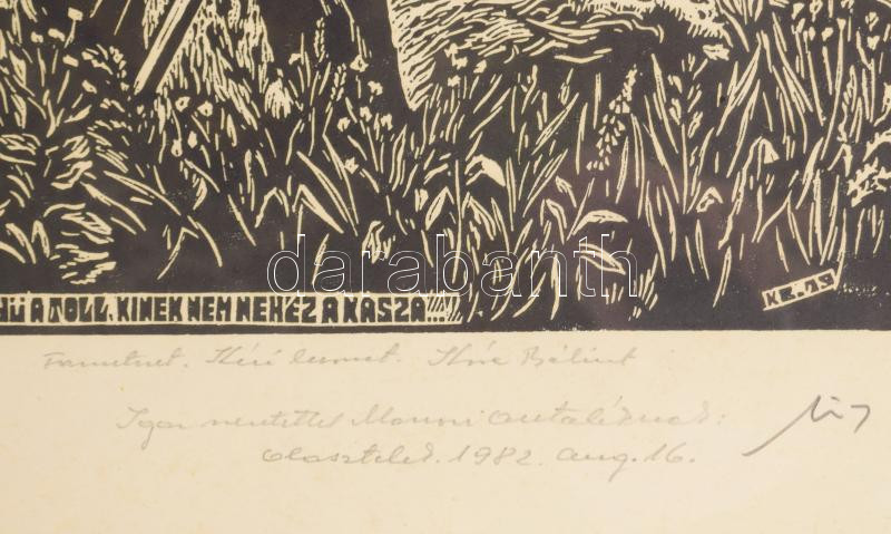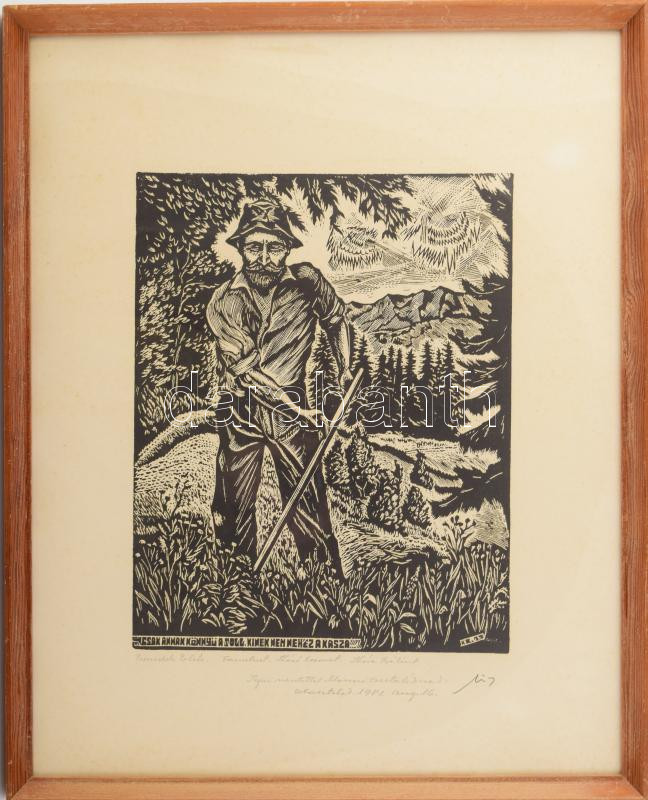 Leírás: Kósa Bálint (1932-): Benedek Elek, Székelyföld, Olasztelek. Fametszet, papír, jelzett, kézilevonat, Kósa Bálint autográf ajándékozási soraival 1982-ből. Üvegezett fakeretben, 38×30 cm