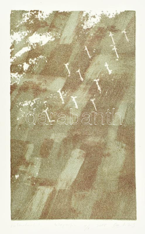Leírás: Orr András (-): Szélmalmok I, 2008. Litográfa, papír, jelzett, IX/X számozással. 41x24,5 cm