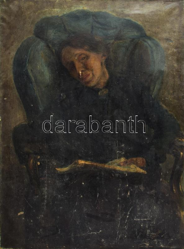 Leírás: Rózsaffy Dezső (1877-1937): Olvasó hölgy portréja. Olaj, vászon, jelezve jobbra lent. Hátoldalán 1934. évi Nemzeti Munkahét, Műcsarnok kiállítási raglappal. Sérült. 80×60 cm / oil on canvas, signed, damaged