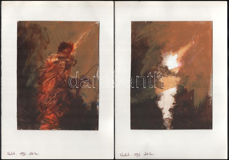 Leírás: Szalay Pál (1953-2015), össz. 3 db mű: Vázlatok, 1997. Olaj, karton, 2 db jelzett, papírlapra kasírozva. 20,5x15,5 cm