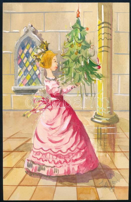 Tahi Tóth Nándor (1912 - 1978): Királylány karácsonyfával. Akvarell, p... https://www.darabanth.com/hu/477-Gyorsarveres/477.0/Festmenyek-es-grafikak/Festmenyek-es-grafikak~1000011/Tahi-Toth-Nandor-1912-1978-Kiralylany-karacsonyfaval-Akvarell-papir-jelzett-28x18-cm~II3243311