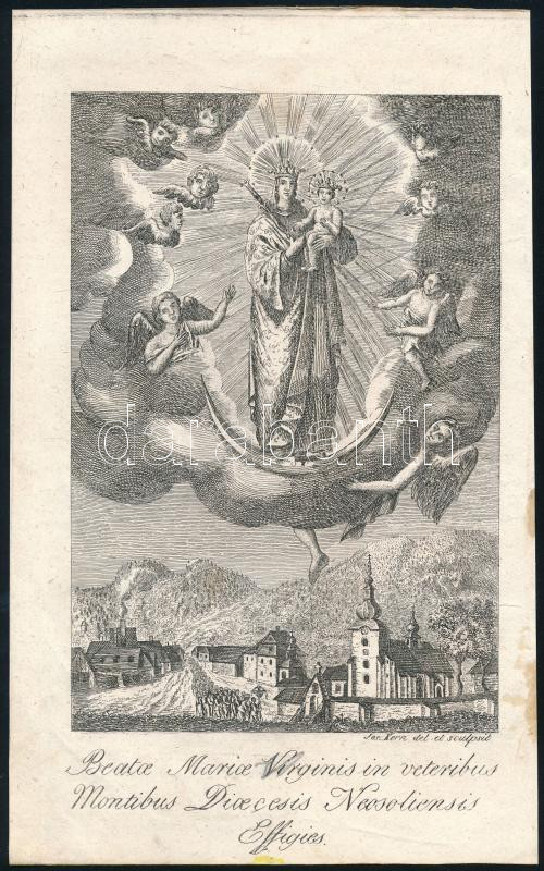 1836 Kern József (1795-1876): Beatae Mariae Virginis in veteribus Montibus Dioecesis Neosoliensis Effigies (A besztercebányai Mária-templom). Rézmetszet, papír, jelzett a metszeten, 16x11 cm. [In: Jordánszky Elek: Magyar országban 's az ahoz tartozó részekben lévő Bóldogságos Szűz Mária kegyelem' képeinek rövid leírása. Pozsony, 1836.]