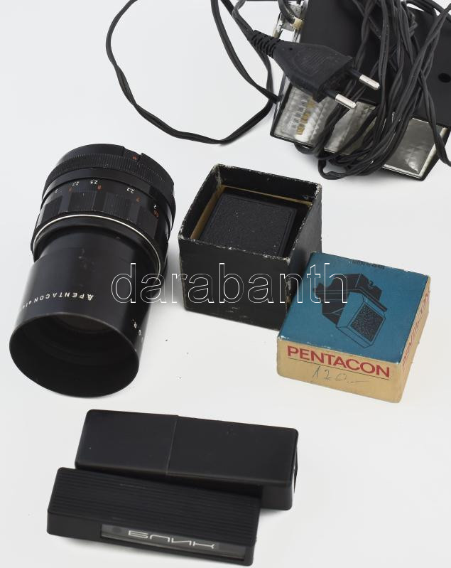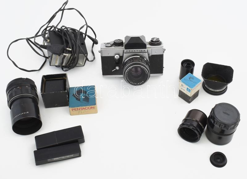 Leírás: Praktica VLC kamera 2 objektívvel Pentacon electric 1,8/50, 2,8/135 és tartozékokkal: gyűrűkkel, vakuval.