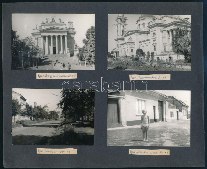 Leírás: 1960 Budapest, utcarészletek, futballmérkőzés, 4 db albumlapra ragasztott fotó, hátoldalon 4 db egri fotó, 7×9,5 cm