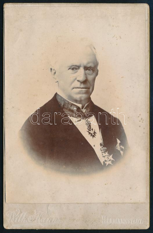 Georg Daniel Teutsch (1817-1893) erdélyi szász történész, evangélikus püspök nagyszebeni fotója, 1848-ban a segesvári polgárság századosa volt, országgyűlési képviselő 1866-tól, 16,5×10,5 cm